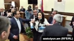 Страсти разгорелись в тот момент, когда член «Еркир цирани» Марина Хачатрян дала пощечину толкавшему ее члену фракции РПА Эдмону Киракосяну, который в ответ также отвесил ей оплеуху. А член фракции РПА Васпурак Мартиросян стал тянуть Хачатрян за волосы.